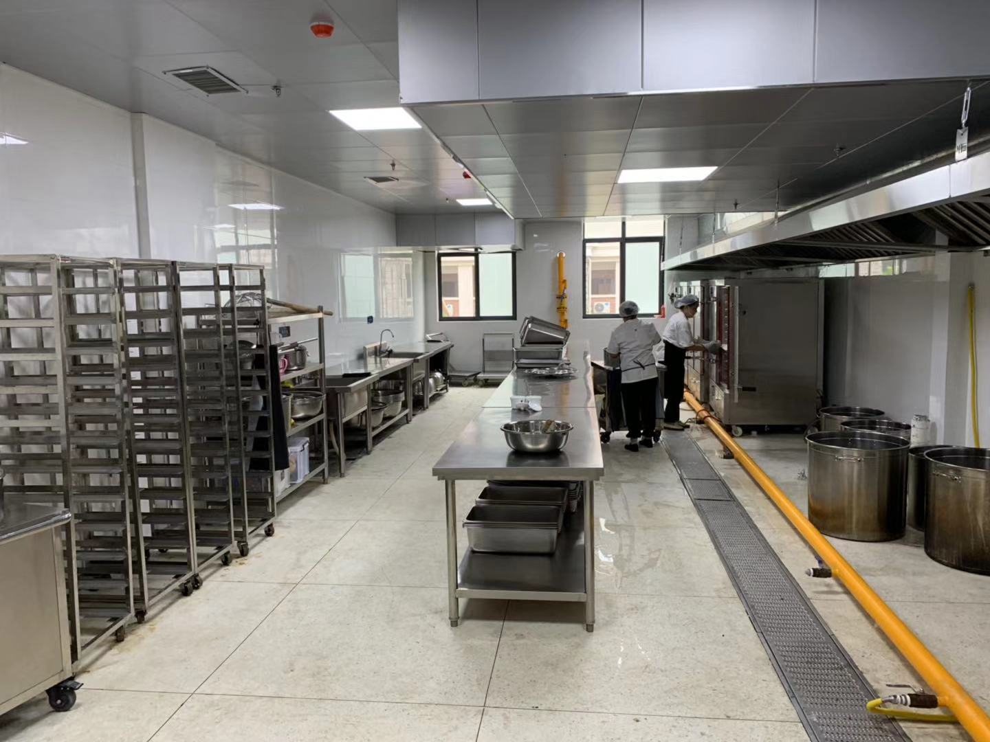 以粗加工間為例,原料存放需要菜架、冰柜;摘菜需要工作臺(tái)案;洗菜需要水池。這些環(huán)節(jié)都應(yīng)考慮并做出具體的安排。根據(jù)需要處理的食料類(lèi)別,還應(yīng)有分類(lèi)加工的機(jī)械設(shè)備,需要考慮計(jì)算加工量,并配備合適的設(shè)備。每個(gè)工作間、每個(gè)專(zhuān)業(yè)崗位都有需要考慮分析的環(huán)節(jié)細(xì)節(jié)。