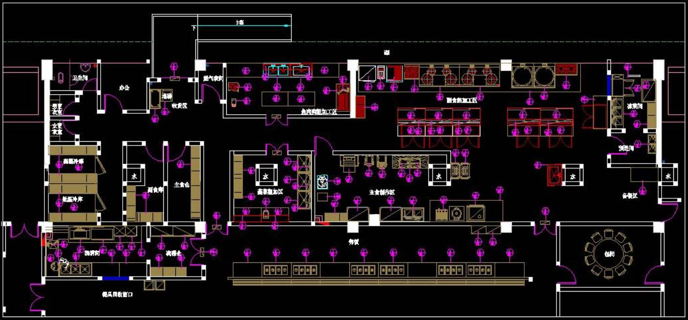 2、必須突出食品安全管理:廚房各工作間有區(qū)域劃分,廚房加工區(qū),與生活、辦公區(qū)域必須分開,并有明顯的區(qū)域界限,不應界限不請或互相穿插,在工作區(qū)內更不能設衛(wèi)生間、辦公室,更衣間。特別是要求潔凈度比較高的涼菜間。不允許外人進入。餐廳也不允許后廚人員隨意進入,消除交叉確保各行其道:員工通行路徑有區(qū)域劃分和出入口方向的區(qū)別,進貨、員工出入,垃圾排運,不應與傳菜通道混用,不應穿越餐廳。傳菜通道要盡量短,直通餐廳,與收殘有不同出人口。制度約束是必要的.利用有形設計規(guī)范員工路徑就更加有效。