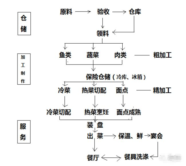 以上廚房布局按照操作順序原則:保證人流、物流暢通;生熟食、凈污碟切勿交叉。