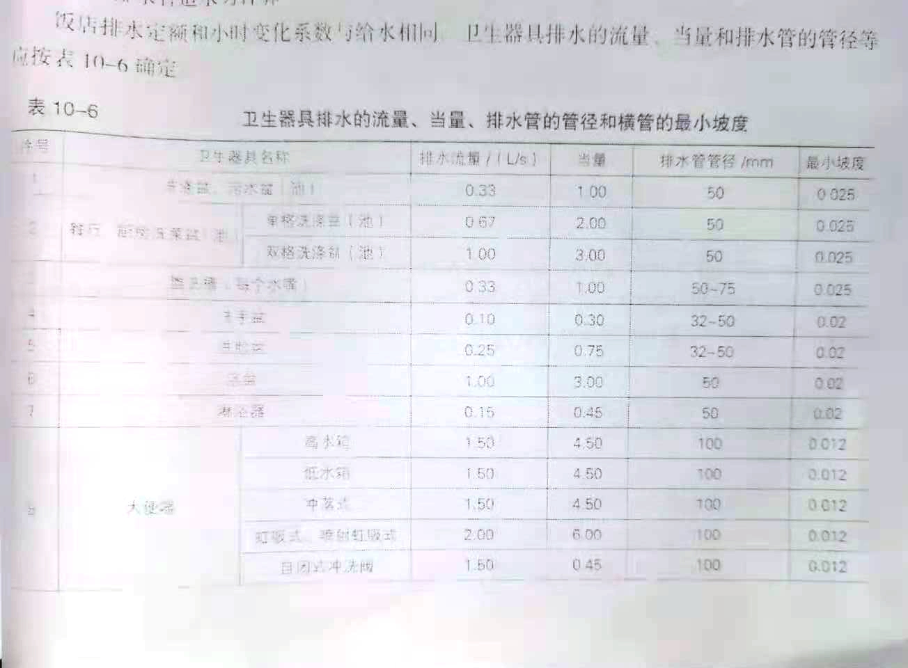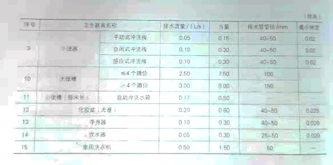 衛(wèi)生器具排水的流量,當(dāng)量、排水管的管徑和橫管的最小坡度