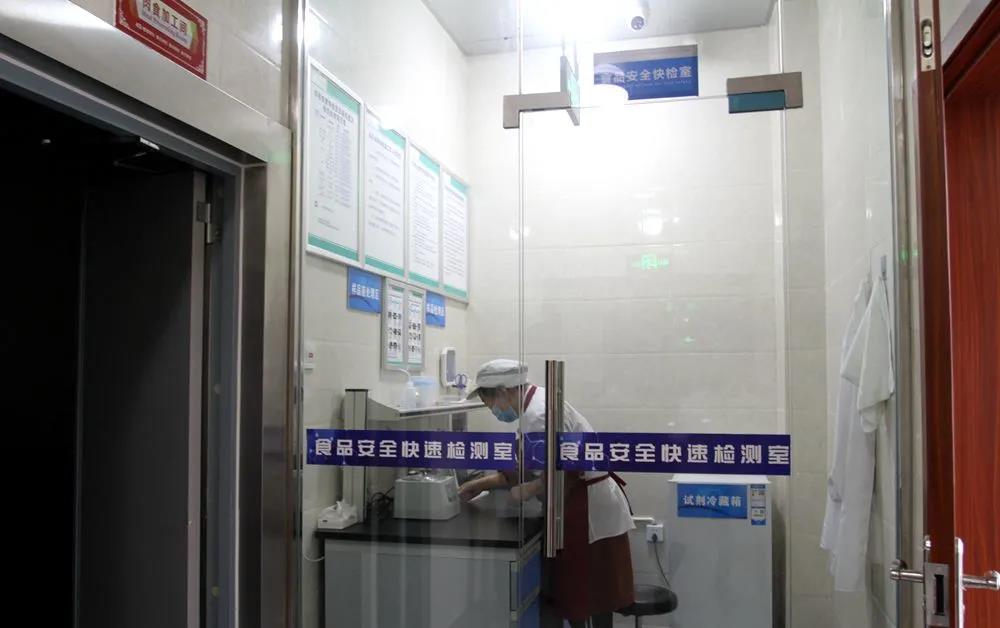 在后廚走了一圈,智能出入庫電子秤等眾多的智能監(jiān)控設備讓見我們漲了不少見識,尤其是位于后廚最里面的一間食品安全快速檢測室簡直讓人大開眼界。據(jù)介紹,在每日的菜品入庫中,如工作人員發(fā)現(xiàn)食材不夠新鮮,質(zhì)量不太好,但又無法斷定時,他們便可進入食品安全快速檢測室,借助精密的儀器進行檢測,菜品質(zhì)量好不好15分鐘就能出結(jié)果,“不過關(guān)的食材,我們堅決退回?!备毙iL表示學校對所使用的食材嚴格把關(guān)。