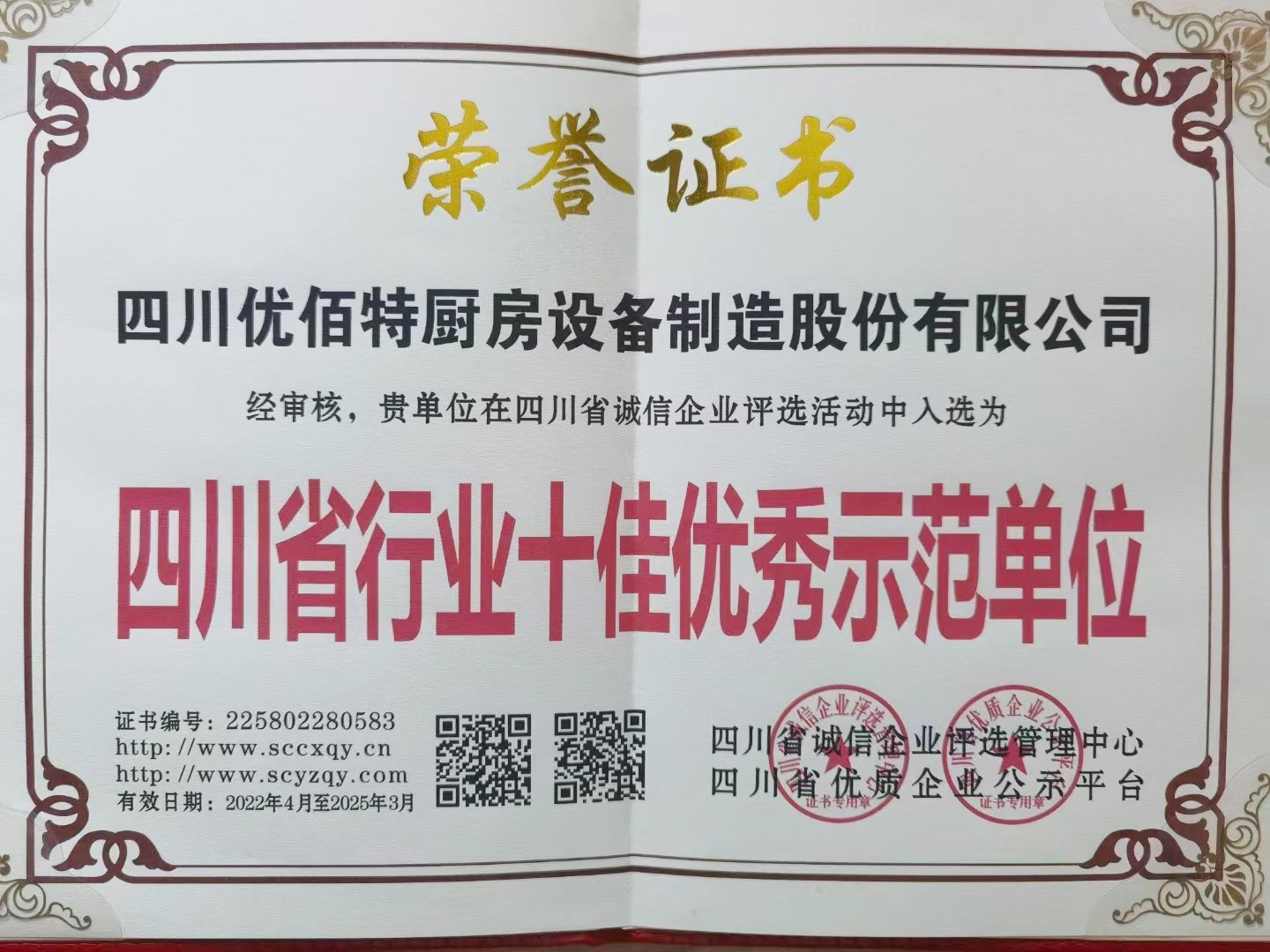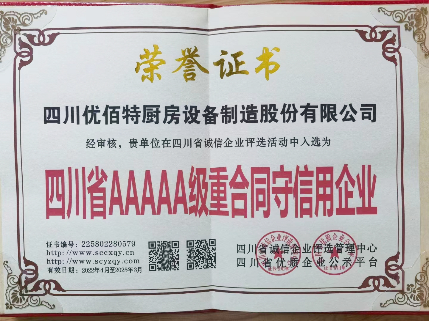 經(jīng)過優(yōu)佰特全體同仁的努力,公司再獲殊榮,接連收到由四川省誠信企業(yè)評(píng)選管理中心頒發(fā)的榮譽(yù)證書: