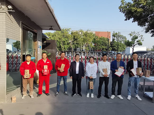 在各部門的負(fù)責(zé)人回顧完本部門的工作后,便開始了頒獎(jiǎng)環(huán)節(jié)。獲獎(jiǎng)人員紛紛上臺(tái)領(lǐng)獎(jiǎng),并和公司領(lǐng)導(dǎo)合影。