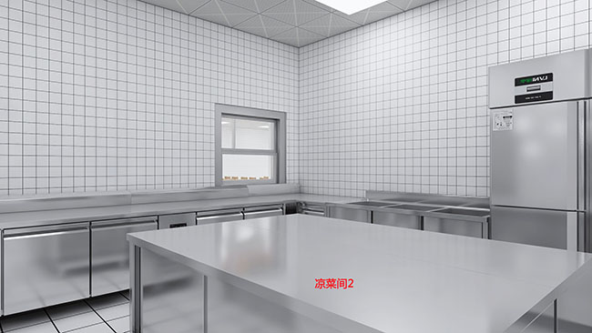 該工作區(qū)域負責涼菜熟制、改刀裝盤、水果盤的切制裝配及出品等工作。為保證成品質量、防止涼菜切配受污染變質,應保持室內高度潔凈和低溫環(huán)境。檔次較高的飯店,涼菜間設洗手更衣的預進間和出餐口。為保證涼菜間的低溫潔凈,涼菜的熟制應該在另設的加工間內進行。涼菜熟制需要炒灶、湯灶等爐具;涼菜改刀裝盤還需要配置工作臺、保鮮工作臺、拉門工作臺、冰柜、貨架、貨柜、碗柜、水果保鮮柜、制冰機、碎冰機等。