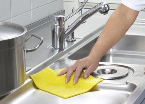 不論是哪種材質(zhì)的櫥柜臺(tái)面,都怕化學(xué)品和熱的侵蝕,不銹鋼的臺(tái)面沾到鹽分還可能生銹,所以平時(shí)應(yīng)注意避免將熱鍋或醬油瓶等物品直接放在臺(tái)面上。清潔臺(tái)面很簡(jiǎn)單,只需用濕抹布沾上清潔劑就可,不銹鋼臺(tái)面易刮傷,用做菜剩下的蘿卜或黃瓜的橫切面沾去污粉輕擦,不會(huì)刮傷臺(tái)面。