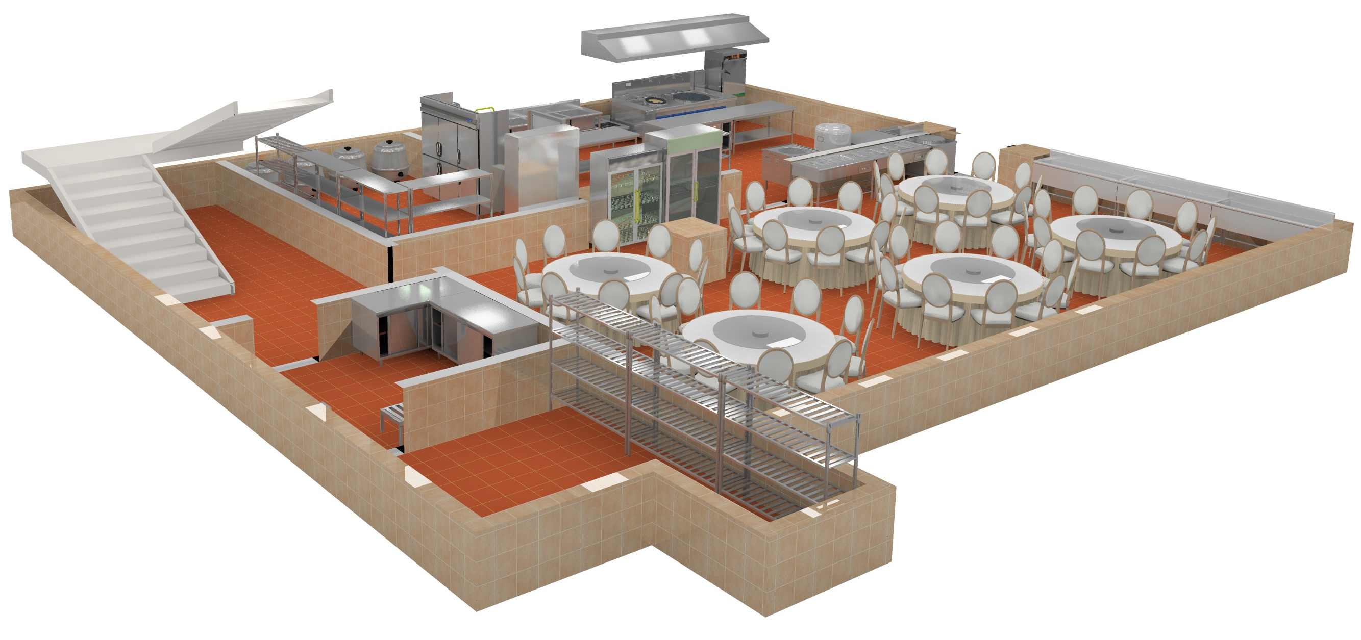 大型單位食堂廚房設計方案,充分考慮了食堂用餐情況以及特殊的環(huán)境,在滿足廚房功能的同時,也考慮了廚房的安全性,節(jié)能性,環(huán)保性等。